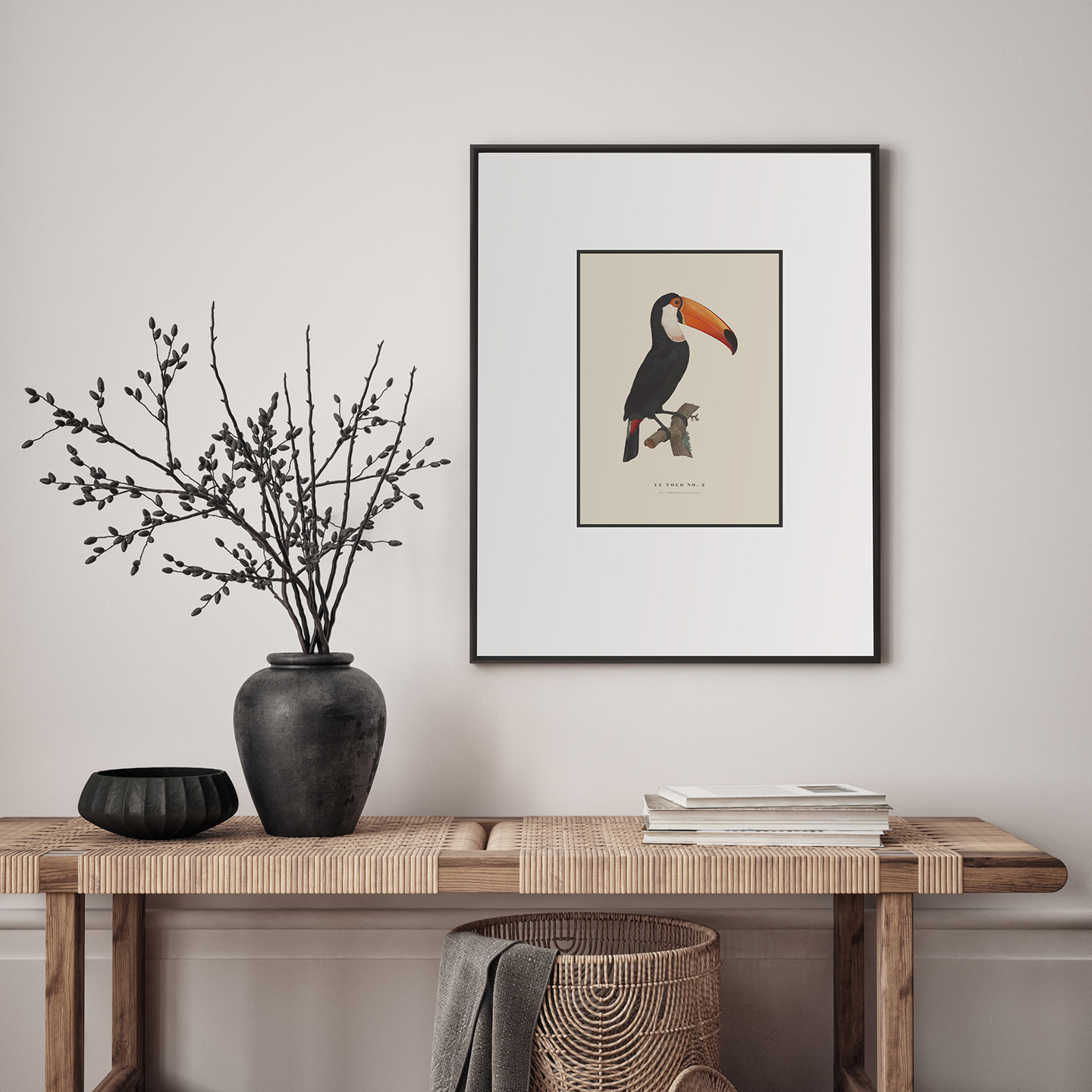 Transform your living space with a stunning giclée print featuring one of four unique toucan illustrations. Printed on museum-quality 300gsm heavyweight paper (66 lb) with archival inks, our prints deliver rich, vibrant colors and precise details. The paper is matte, bright white for a perfect finish.