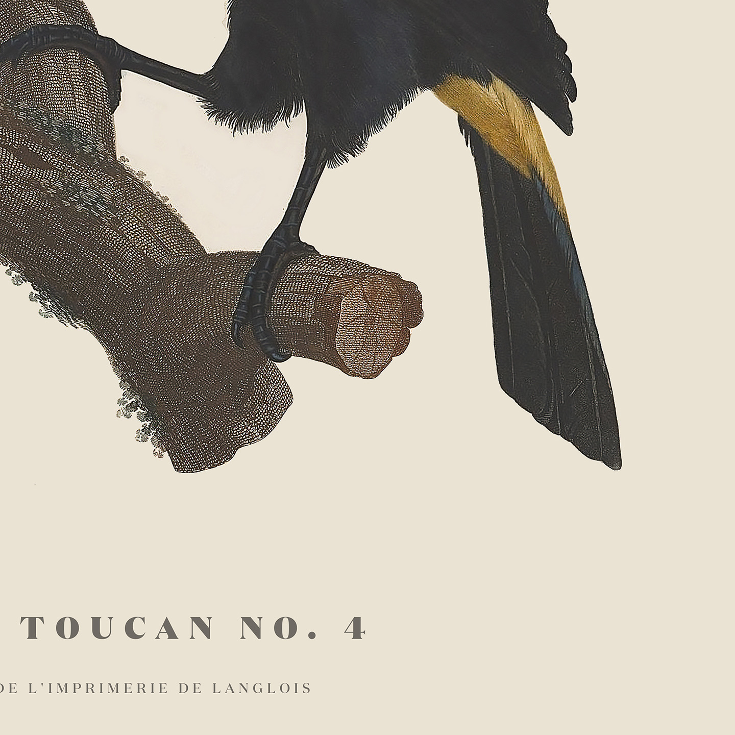 The toucan print from the turn of the century is a remarkable example of botanical heritage art, capturing the vibrant essence of tropical birds. Rendered with exquisite detail, the print showcases the toucan’s iconic features—its large, colorful beak and striking plumage. This piece, created during a period of burgeoning interest in natural history and exploration, reflects the era’s fascination with the diversity of the natural world. Its meticulous artistry not only serves as a scientific illustration but also as a celebration of the toucan’s whimsical beauty, making it a treasured artifact in botanical art collections. The original design has been rethought with typography and layouts created by the Print Poster Art Studio.